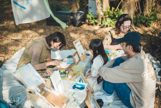 草地上鋪上大大的畫紙,顏料像海一樣沒有邊界!